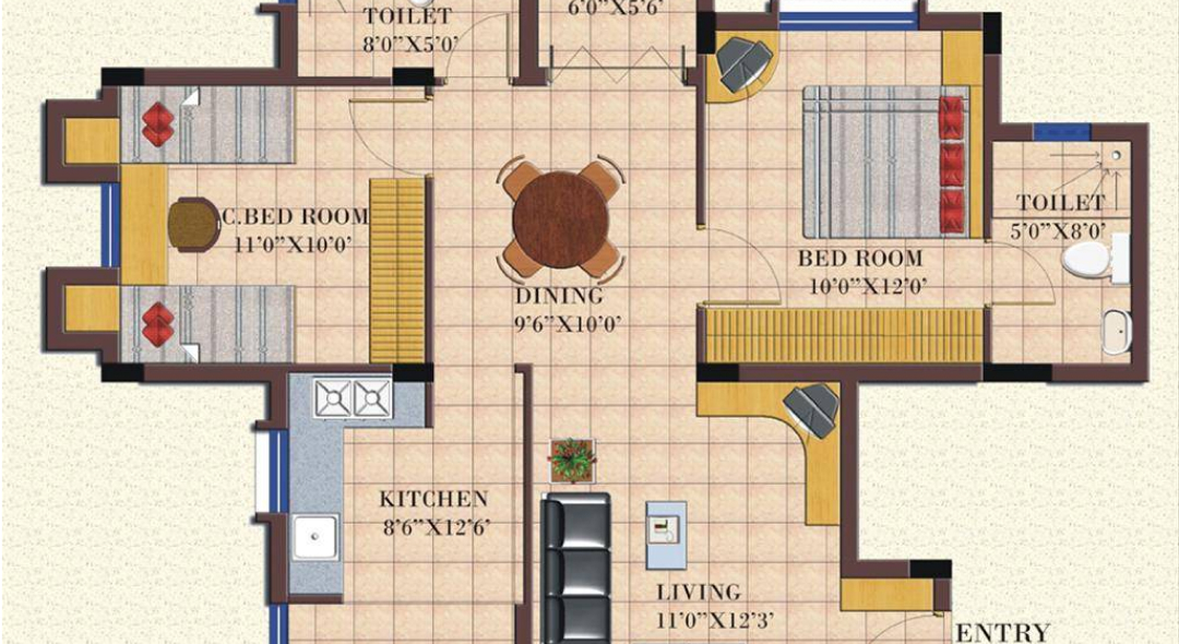 • Area 1250 - 1584 Sqft