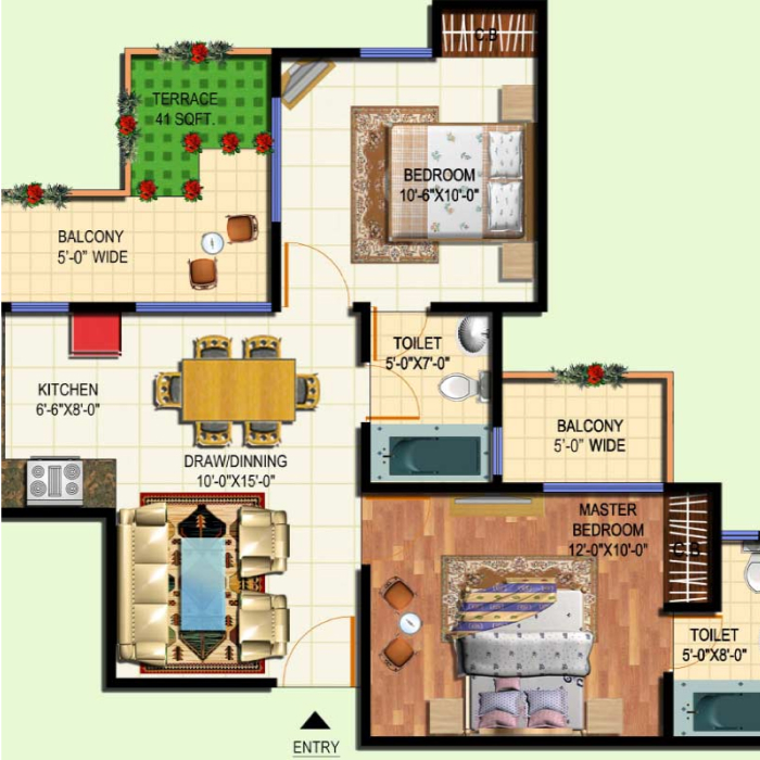 • Area 700 - 954 Sqft